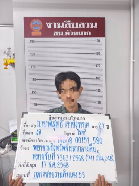 วันนี้ 17 ธันวาคม 2568 ภายใต้การอำนวยการของ พ.ต.ท.พิเชษฐ์ ก้อนแพง รองผกก.สอบสวน.รรท.ผกก.สน.หัวหมาก,พ.ต.ท.ณัฐวัฒน์ ทารักษ์ รอง ผกก.สส.สน.หัวหมาก ได้สั่งการให้ พ.ต.ท.บำเพ็ญ นามฉวี สว.สส.สน.หัวหมาก พร้อมกำลังฝ่ายสืบสวน สน.หัวหมาก ได้ร่วมกันจับกุมผู้ต้องหาตามหมายจับ ทราบชื่อต่อมานายพิสุทธิ์ ดายังหยุด อายุ 27 ปี อาศัยอยู่ภูมิลำเนา บ้านเลขที่ 238 หมู่ที่ 8 ต.หาดแพง อ.ศรีสงคราม จ.นครพนม ซึ่งผู้ต้องหา ตามหมายจับศาลอาญา ในข้อหา “พยายามชิงทรัพย์ในเวลากลางคืนโดยใช้ยานพาหนะเพื่อสะดวกแก่การกระทำผิดหรือการพาทรัพย์นั้นไปหรือเพื่อให้พ้นจากการจับกุม”