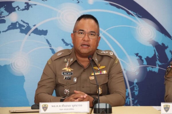 พล.ต.ต.พันธนะ นุชนารถ รอง ผบช.สตม.แถลงผลจับกุมชาวอินเดีย 19 ราย เช่าบ้านหรูตั้งแก๊งค์แอดมินขายของเถื่อน