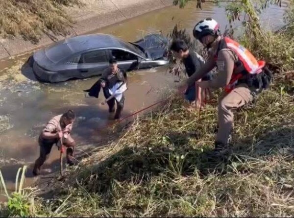วันนี้ 19 ธ.ค.68 เวลาประมาณ 11.30 น. สายตรวจจราจร สภ.ดอยสะเก็ด จ.เชียงใหม่ ได้ออกตรวจเส้นทางถนนสายคันคลองชลประทาน ต.เชิงดอย อ.ดอยสะเก็ด พบเหตุรถยนต์เก๋ง (ระบบไฟฟ้า) เสียหลักตกลงคลองชลประทาน จนท.ได้เข้าให้ความช่วยเหลือนำคนขับ (หญิง) ออกจากรถได้อย่างปลอดภัย