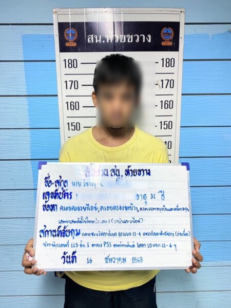 เมื่อวันที่ 19 ธ.ค.ภายใต้อำนวยการของ พ.ต.อ.ศรศักดิ์ ทองมี ผกก.สน.ห้วยขวาง, พ.ต.ท.ธเนศ ศรีจำปา รอง ผกก.สส.สน.ห้วยขวาง พ.ต.ท.ชิษณุพงศ์ ไค่นุ่นสิงห์ สว.สส.สน.ห้วยขวาง พร้อมชุดสืบสวน สน.ห้วยขวาง จับกุมตัว นายวิชาญ หรือแซม (สงานนามสกุล) อายุ 32 ปี ชาว จ.ชัยภูมิ พร้อมของกลาง 8 รายการ อาทิ ยาบ้า รวมกว่า 120 เม็ด, ยาไอซ์จำนวนหนึ่ง และอาวุธปืน ชนิดลูกโม่ ขนาด .38 มม. สีเงิน จำนวน 1 กระบอก พร้อมเครื่องกระสุน .38 จำนวน 6 นัด ได้ที่บริเวณกลางซอยรัชดาภิเษก 10 แยก 11-4 ต่อเนื่องกับห้องพักเลขที่ 115 ชั้น 1 อพาร์ทเมนต์ ใกล้เคียง ซอยรัชดาภิเษก 10 แยก 11-4 แขวงและเขตห้วยขวาง กทม. (ของวันที่ 16 ธ.ค. เวลาประมาณ 16.15 น.)