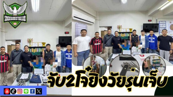 เมื่อเวลา 21.00 น.วันที่ 30 ธ.ค.68 พ.ต.อ.จรินทร์ อธิบธานนท์ ผกก.สภ.ธัญบุรี พ.ต.ท.ธวัชชัย รัตนพาหุ รองผกก.สส.สภ.ธัญบุรี พ.ต.ท.สุนทร สุขหน้าไม้ สว.สส.สภ.ธัญบุรี พร้อมเจ้าหน้าที่ตำรวจสืบสวนสภ.ธัญบุรี ได้ร่วมกันจับกุม1.นายนพนิธิ หรือโบ๊ท อายุ 17 ปี ที่อยู่ หมู่ที่ 1 ต.ลำผักกูด อ.ธัญบุรี จ.ปทุมธานี 2.นายกฤตเมธ หรือตุล อายุ 18 ปี ที่อยู่ หมู่ที่ 1 ต.ลำผักกูด อ.ธัญบุรี จ.ปทุมธานี พร้อมของกลาง1.รถจักรยานยนต์ยี่ห้อ honda รุ่น zoomer x สีดำ 2.อาวุธปืนไทยประดิษฐ์ขนาดเบอร์ 12 จำนวน 1 กระบอก กระสุนปืนลูกซองเบอร์12 จำนวน1 นัด และเสื้อผ้าของผู้ต้องหาทั้งสองคนที่ใส่ในวันเกิดเหตุ โดยจับกุมตัวได้ที่ท้ายซอยหมู่บ้าน ม.3 ต.ลำผักกูด อ.ธัญบุรี จ.ปทุมธานี