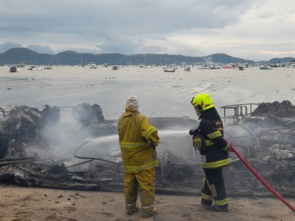 เจ้าหน้าที่กู้ภัย พร้อมด้วยเจ้าหน้าที่งานป้องกันและบรรเทาสาธารณภัยจากเทศบาลตำบลฉลอง เทศบาลตำบลราไวย์ เทศบาลตำบลวิชิต และเทศบาลตำบลกะรน รวมถึงองค์การบริหารส่วนจังหวัดภูเก็ต สำนักงานป้องกันและบรรเทาสาธารณภัยจังหวัดภูเก็ต ศูนย์ป้องกันและบรรเทาสาธารณภัย เขต 18 ภูเก็ต สำนักงานเจ้าท่าภูมิภาค สาขาภูเก็ต สถานีตำรวจภูธรฉลอง ตำรวจน้ำ มูลนิธิกุศลธรรมภูเก็ต และหน่วยงานที่เกี่ยวข้อง ได้ระดมรถดับเพลิงและกำลังเจ้าหน้าที่เข้าฉีดน้ำสกัดกั้นเพลิงอย่างเร่งด่วน โดยใช้วิธีตัดเชือกและแยกเรือแต่ละลำออกจากกันให้ห่างมากที่สุด เพื่อป้องกันไม่ให้เพลิงลุกลามไปยังเรือลำอื่นเพิ่มเติม