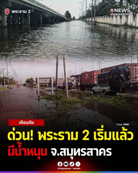 สมุทรสาคร – เมื่อช่วงเวลาที่ผ่านมา มีรายงานสถานการณ์น้ำทะเลหนุนสูงเข้าท่วมผิวการจราจรบน ถนนพระราม 2 ขาเข้ากรุงเทพฯ ส่งผลกระทบอย่างหนักต่อการเดินทาง ประชาชนโปรดวางแผนเลี่ยงเส้นทาง