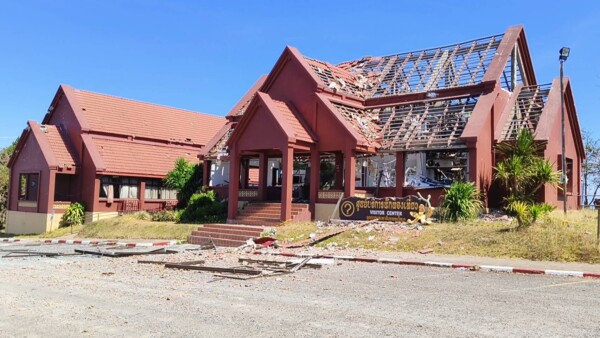 จากนั้นได้เดินทางต่อไปยังผามออีแดง อุทยานแห่งชาติเขาพระวิหาร เพื่อมอบสิ่งของและน้ำดื่มสนับสนุนภารกิจในการปกป้องอธิปไตย โดยพบร่องรอยความเสียหายจากลูกกระสุนปืนใหญ่ และจรวด BM-21 ตกใส่อาคารศูนย์บริหารนักท่องเที่ยว ตลาดชุมชน ซึ่งใกล้กับหลักจารึกที่สร้างขึ้นเพื่อเป็นอนุสรณ์แห่งมิตรภาพไทย-กัมพูชา ตามข้อตกลงระหว่าง ร.ต.สมจิตต์ จุลพงษ์ ผู้ว่าฯศรีสะเกษ ประเทศไทย และ นายซุก ซัมเอง ผู้ว่าฯพระวิหาร ประเทศกัมพูชา โดยมีพิธีเปิดเมื่อวันที่ 6 มี.ค. 2535 โดย นายอนันต์ อนันตกูล ปลัดกระทรวงมหาดไทย จนได้รับความเสียหาย อีกด้วย.