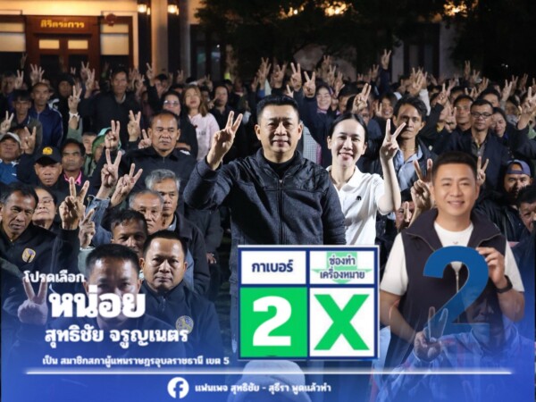 สุดท้าย  นายสุทธิชัย จรูญเนตร ได้อ้อนขอคะแนน เพิ่มเติมว่า  ผมขออาสาพัฒนา อำเภอตระการพืชผล  อำเภอกุดข้าวปุ้น จ.อุบลราชานี ต่อไป เพื่อความเจริญก้าวหน้าของบ้านเฮา ผมเชื่อว่า จะป้องกันแชมป์เอาไว้ได้ถ้าหากพ่อแม่พี่น้องประชาชนช่วยกันเลือกผม  พ่อแม่พี่น้องอย่าลืมเด้อ! วันที่ 8 กุมภาพันธ์ 2569  เข้าคูหา บัตรสีเขียวโปรดเลือก “หน่อย” สุทธิชัย จรูญเนตร เบอร์ 2 เป็น สมาชิกสภาผู้แทนราษฎรอุบลราชธานี เขต 5 ตระการพืชผล  กุดข้าวปุ้น เด้อ ครับพี่น้อง และ บัตรสีชมพู เลือกพรรคภูมิใจไทย กาเบอร์ 37 เพื่อให้นายอนุทิน  ชาญวีรกูล เป็นนายกรัฐมนตรี