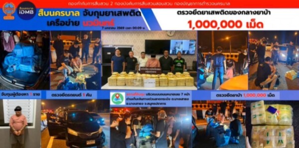สืบนครบาลทลายเครือข่ายค้ายา “เนส นวมินทร์” ยึดยาบ้าบิ๊กล็อต 1 ล้านเม็ด ลอบขนจากชายแดนส่งภาคตะวันออก สารภาพทำมา 10 ครั้ง ได้ค่าจ้าง 1.2 แสนบาท