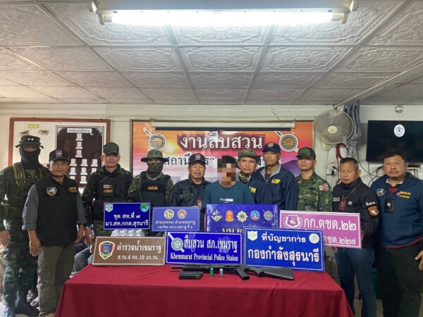 วันนี้ ( 14 ม.ค.69 ) เวลา 05.00 น. ที่บริเวณด้านหน้าอาคาร สภ.เขมราฐ อ.เขมราฐ จ.อุบลราชธานี ภายใต้อำนวยการของ พ.ต.อ.กวีพงษ์ ชลการ ผกก.ตชด.22 ,พ.ต.ท.จารุบุตร เรืองศรี รอง ผกก.ตชด.22 ,พ.ต.ท.ไสว สอนทุย ผบ.ร้อย ตชด.227 มอบหมายให้ ร.ต.อ.ครองชัย ยนต์ดัน รอง ผบ.ร้อย ตชด.227/หน.ชปข.ศป.ปส.ร้อย ตชด.227 พร้อมกำลังพล รวม 11 นาย ร่วมกับ จนท.ตร.สส.สภ.เขมราฐ และหน่วยความมั่นคงในพื้นที่ ร่วมพิธีปล่อยแถวเพื่อปิดล้อมตรวจค้นเป้าหมาย รายละเอียด ดังนี้