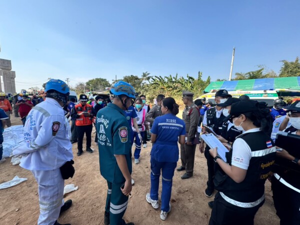นายยุทธนา ทาโคตร์ รักษาการหัวหน้าแผนกบรรเทาสาธารณภัย นำทีมเจ้าหน้าที่กู้ชีพ กู้ภัย และรถอุปกรณ์กู้ภัยขนาดหนัก (น.เขต) เข้าสนับสนุนการปฏิบัติงานในพื้นที่ทันที โดยมีภารกิจหลักคือการค้นหาผู้ที่อาจติดอยู่ใต้ซากปรักหักพังและเร่งลำเลียงผู้บาดเจ็บส่งสถานพยาบาลใกล้เคียง