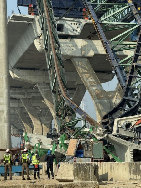ผลกระทบ: เครนขนาดใหญ่ล้มทับพื้นผิวจราจรในช่องทางด่วน ส่งผลให้รถไม่สามารถสัญจรผ่านได้ในจุดดังกล่าว