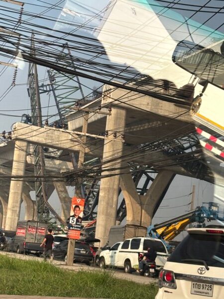 ด่วน! เครนถล่ม หน้าโรงแรมปารีส ถ.พระราม 2 ขาออก รถติดหนัก