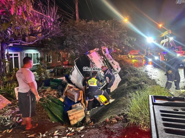 เมื่อวันที่ 15 ม.ค. 2569 เวลา 01.57 น. รถบรรทุกหกล้อทะเบียน 81-8449 จังหวัดประจวบคีรีขันธ์ บรรทุกปลาทูประมาณ 2 ตัน เสียหลักบนถนนลื่น บริเวณโค้งหน้าโรงเรียนบ้านท่าแค ต.ท่าแค อ.เมือง จ.พัทลุง พุ่งชนเสาไฟส่องสว่างข้างทางก่อนพลิกคว่ำตะแคงข้างอยู่ข้างทาง