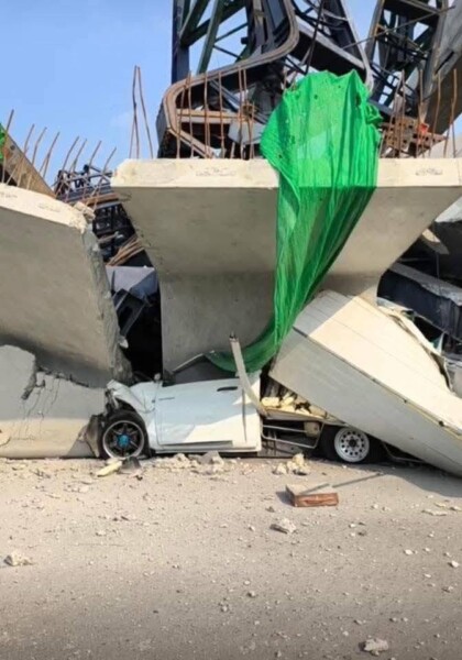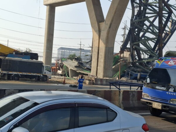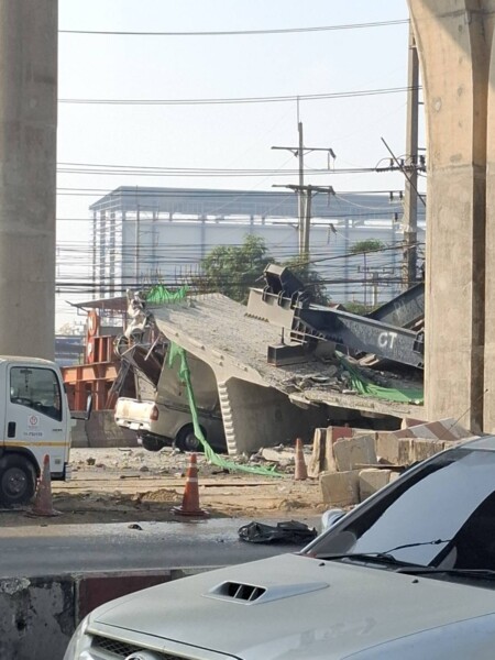 เครนก่อสร้างทางยกระดับถล่มทับรถบนถนนพระราม 2 เสียชีวิต 2 เจ็บ 1 ราย