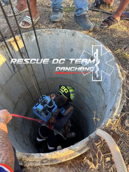 #ขณะนี้เจ้าหน้าที่กู้ภัยสามารถนำเด็กชายวัย4ขวบขึ้นมาจากบ่อบาดาลได้สำเร็จ