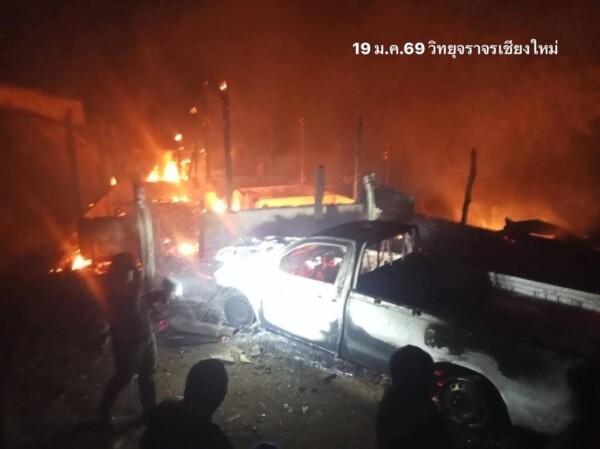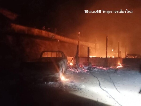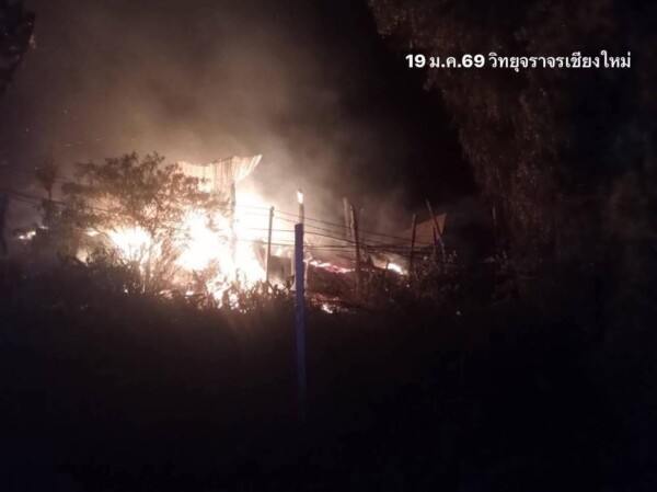 ไฟไหม้บ้านทั้งหลัง อ.แม่วาง เชียงใหม่ รถเสียหาย 2 คัน บาดเจ็บ 1 ราย