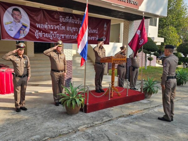 พร้อมข้าราชการตำรวจในสังกัด สภ.เมืองยาง ร่วมให้การต้อนรับอย่างพร้อมเพรียง