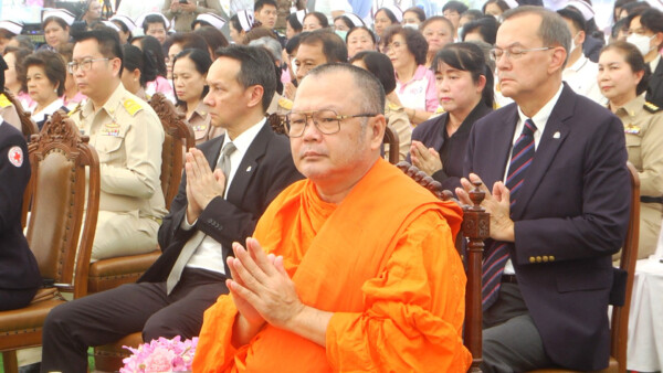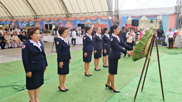 โดยมีนายจองชัย เที่ยงธรรม อดีต รมช.แรงงานและสวัสดิการสังคม ผศ.ดร.พิศิษฐ์ พลธนะ ผอ.วิทยาลัยพยาบาลบรมราชชนนี สุพรรณบุรี นายคมสัน ทองชม ผู้พิพากษาหัวหน้าศาล จ.สุพรรณบุรี พ.อ.ณัฐติพงษ์ ตะโกใหญ่ รอง ผอ.รมน.จ.สุพรรณบุรี พ.ต.อ.ยิ่งยศ เขินอำนวย รอง.ผบก.ภ.จว.สุพรรณบุรี พ.ต.อ.บุญย์พัชร์ ปิยะบุญสิทธิ ผกก.สภ.เมืองสุพรรณบุรี นายเอกภพ จันทร์เพ็ญ ผอ.ศูนย์ป้องกันและบรรเทาสาธารณภัย เขต 2 สุพรรณบุรี รองนายกเหล่ากาชาดจังสุพรรณบุรี นางสาวนิษฐกานต์ คุณวัชระกิจ วัฒนธรรม จ.สุพรรณบุรี ดร.เอกพันธุ์ อินทร์ใจเอื้อ นายกเทศมนตรีเมืองสุพรรณบุรี แพทย์ พยาบาล หัวหน้าส่วนราชการ และประชาชนร่วมงานจำนวนมาก
