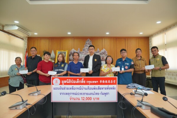 มูลนิธิป่อเต็กตึ๊ง โดย นายวิเชียร เตชะไพบูลย์ ประธานกรรมการ ห่วงใยผู้ได้รับผลกระทบจากเหตุการณ์ดังกล่าว จึงได้มอบหมายให้ฝ่ายสาธารณภัย นำโดย นายรัชพร ประสงค์ทรัพย์ หัวหน้าแผนกสาธารณภัย และนายชุมพล บุญภักดี ผู้ช่วยหัวหน้าแผนกสาธารณภัย นำเจ้าหน้าที่แผนกสาธารณภัย แผนกบรรเทาสาธารณภัย แผนกบัญชี-การเงิน/การธนาคาร และแผนกหน่วยแพทย์สงเคราะห์ชุมชน ลงพื้นที่ชายแดนจังหวัดอุบลราชธานี ศรีสะเกษ สุรินทร์ นครราชสีมา และสระแก้ว รวม 5 จังหวัด ในระหว่างวันที่ 21-23 มกราคม 2569 โดยมูลนิธิฯ เข้าให้กำลังใจพร้อมมอบเงินปลอบขวัญแก่ผู้บาดเจ็บรายละ 10,000 บาท พร้อมกระเช้าสุขภาพ รวม 30 ราย มอบเงินช่วยเหลือกรณีบ้านพังเสียหายทั้งหลังๆ ละ 12,000 บาท รวมจำนวน 25 หลัง และมอบเงินช่วยเหลือค่าฌาปนกิจแก่ญาติผู้เสียชีวิตรายละ 20,000 บาท จำนวน 1 ราย รวมงบประมาณทั้งสิ้น 656,000 บาท (หกแสนห้าหมื่นหกพันบาทถ้วน) โดยมี ผู้แทนจากหน่วยงานรัฐ/หน่วยงานต่างๆ ที่เกี่ยวข้อง เป็นผู้ประสานงานและร่วมมอบ