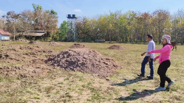 ส่วนดินที่มาเทกองทิ้งไว้ในสนามกีฬา เป็นดินที่ผู้รับเหมาในการขุดลอกคลองระบายน้ำในหมู่บ้าน ซึ่งผู้รับเหมาได้มาปรึกษาขออนุญาตนำดินและเศษวัสดุมาพักไว้ก่อนชั่วคราว เพื่อนำกลับไปใช้ประโยชน์ในการก่อสร้างดังกล่าว จึงได้แจ้งให้ผู้รับเหมานำมาเทกองไว้ตรงนี้ก่อน