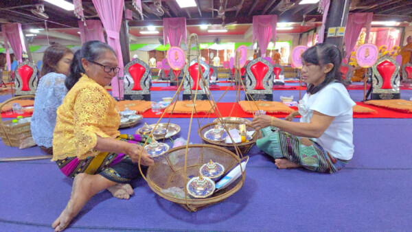 สุพรรณบุรีชาวบ้านจรเข้าสามพันสืบสานประเพณีหาบกระจาดโปร่งขอโชคหลวงปู่เปี้ยน