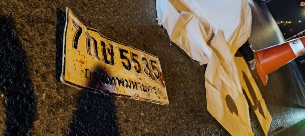 อย่างไรก็ตาม เจ้าหน้าที่พบ แผ่นป้ายทะเบียนรถ ตกอยู่ในจุดเกิดเหตุ ซึ่งจากการตรวจสอบพบว่าเป็นของรถนั่งส่วนบุคคล ยี่ห้อ Toyota Fortuner พนักงานสอบสวน สน.ลำผักชี จึงได้ทำการบันทึกภาพและรวบรวมไว้เป็นหลักฐานสำคัญ