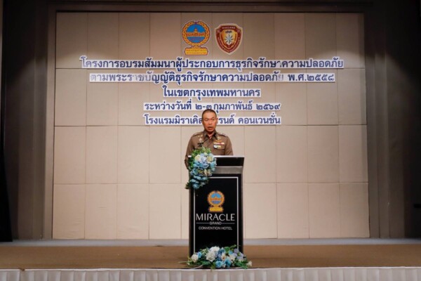 “การยกระดับมาตรฐานพนักงานรักษาความปลอดภัย ไม่ใช่เพียงเพื่อประโยชน์ของบริษัทเท่านั้น แต่คือการสร้างฟันเฟืองสำคัญที่จะช่วยเสริมสร้างความสงบสุขให้กับสังคมในภาพรวมได้อย่างมีประสิทธิภาพ” — พล.ต.ท.สยาม บุญสม ผบช.น. กล่าวในพิธีเปิด