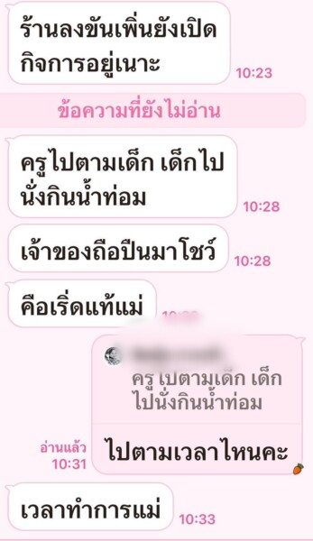 > “ที่น่าตกใจคือ เมื่อคุณครูพยายามเข้าไปติดตามตัวนักเรียน กลับพบว่าเจ้าของร้านมีพฤติกรรมถืออาวุธปืนข่มขู่ จนสร้างความหวาดกลัวให้กับคณะครูเป็นอย่างมาก”