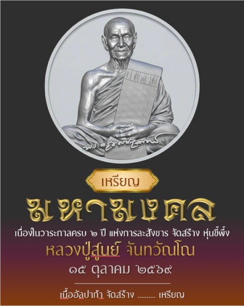 ในการทำบุญร่วมสร้างในครั้งนี้ วัดป่าอิสสระธรรม ได้จัดสร้างเหรียญ “มหามงคล” และพระผงเนื้อผงอังคารธาตุ เพื่อให้ไว้เป็นที่ระลึก เผยแผ่บารมี ขององค์หลวงปู่ฯ และให้ไว้ศรัทธาแก่สาธุชนทั่วไป ได้ร่วมทำบุญบูชาในวาระโอกาสข้างหน้าต่อไป รายได้ในส่วนนี้จะได้นำมาสมทบทุนสร้าง รูปเหมือนหุ่นขี้ผึ้ง หลวงปู่สูนย์ จันทวัณโณ พร้อมตู้โชว์สามารถติดตามข่าวสารได้ที่ เพจ facebook วัดป่าอิสสระธรรม