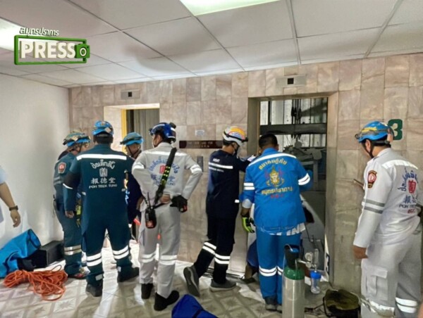 ช่างซ่อมบำรุงพลัดตกลงไปในช่องลิฟต์ ภายในคอนโดแห่งหนึ่ง ย่านถนนเทพารักษ์ ต.สำโรงเหนือ อ.เมือง จ.สมุทรปราการ