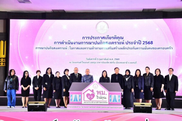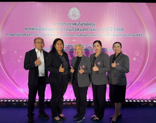เมื่อวันอังคารที่ 3 กุมภาพันธ์ 2569 ณ ห้องแกรนด์ ไดมอนด์ บอลรูม อาคารอิมแพ็ค ฟอรั่ม เมืองทองธานี จังหวัดนนทบุรี สำนักงานคณะกรรมการ นางสาวจันทนา แสงสุ่ม ผู้อำนวยการกลุ่ม ช.พ.ค. และนางจินตนา โมทะจิตร ผู้อำนวยการกลุ่ม ช.พ.ส. พร้อมด้วยพนักงานเจ้าหน้าที่ สกสค. ร่วมงานการประกาศเกียรติคุณการดำเนินงานการฌาปนกิจสงเคราะห์ ประจำปี 2568 ภายใต้แนวคิด “การฌาปนกิจสงเคราะห์ โอกาสและความท้าทายการเสริมสร้างหลักประกันความมั่นคงของครอบครัว” ซึ่งจัดขึ้นโดยกรมกิจการสตรีและสถาบันครอบครัว โดยมี นายกันตพงศ์ รังสีสว่าง ปลัดกระทรวงการพัฒนาสังคมและความมั่นคงของมนุษย์ เป็นประธานในพิธี