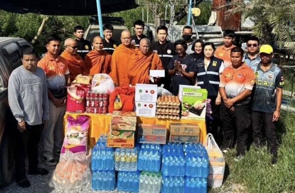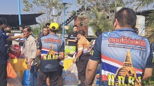 โดยมี พระธรรมวชิรเจติยาจารย์ ที่ปรึกษาเจ้าคณะภาค ๑๔ รักษาการเจ้าอาวาสวัด พระปฐมเจดีย์ฯ ประธานอำนวยการศูนย์ช่วยเหลือผู้ประสบภัยพิบัติคณะสงฆ์จังหวัดนครปฐม พระราชวชิรสุตาภรณ์ เจ้าคณะจังหวัดนครปฐม พระศรีวิสุทธิวงศ์ รองเจ้าคณะจังหวัดนครปฐม พระครูปุญญาภิสันท์ เจ้าคณะอำเภอบางเลน และ พระครูศรีสุตากร ทป.จจ.นฐ./ประธานมูลนิธิหลวงพ่อสมหวัง หน่วยบรรเทาสาธารณภัยมูลนิธิหลวงพ่อสมหวัง วัดกลางบางพระ และทางด้าน
