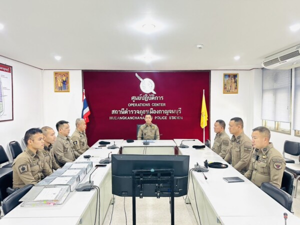 ผบก.ภ.จว.กาญจนบุรี ตรวจเยี่ยม สภ.เมืองกาญจนบุรี กำชับเข้มงานปราบปราม-คุมเข้มแรงงานเถื่อน-ดูแลความปลอดภัยร้านทอง