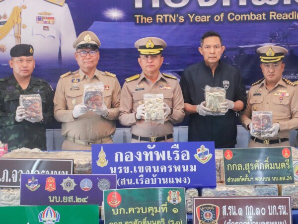 พ่อเมืองนครพนม ร่วมกับทหารเรือ แถลงข่าว ยึดไอซ์ ริมฝั่งโขง 352 กก.