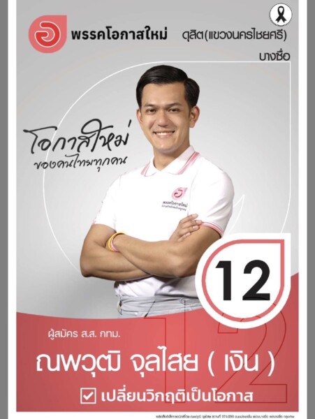 ในช่วงโค้งสุดท้ายของการเลือกตั้งที่กำลังจะมาถึงในอีก 2 วันข้างหน้า นายณพวุฒิ จุลไสย ผู้สมัครรับเลือกตั้งหมายเลข 12 จากพรรคโอกาสใหม่ ได้ลงพื้นที่พบปะพี่น้องประชาชนในเขตดุสิต แขวงนครไชยศรี และเขตบางซื่อ เพื่อขอกำลังใจและแรงสนับสนุนเป็นครั้งสุดท้าย