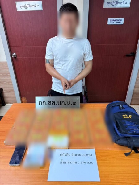 ตำรวจนครบาลจับกุมชาวมาเลเซีย ลอบขนเฮโรอีนกว่า 7 กิโลกรัม เตรียมส่งต่อขบวนการข้ามชาติ