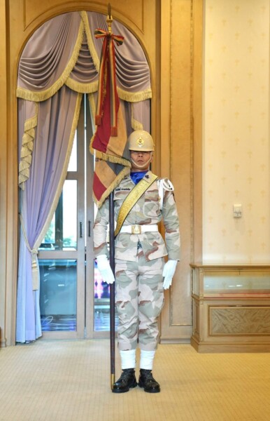 ในการนี้ การอัญเชิญธงได้ปฏิบัติตามระเบียบแบบแผนอย่างเคร่งครัด พร้อมด้วย กองเกียรติยศจากกองบัญชาการกองอาสารักษาดินแดน เพื่อแสดงความเคารพอันสูงสุดและให้สมเกียรติยศของธงประจำกองฯ ในฐานะเครื่องยึดเหนี่ยวจิตใจของสมาชิกกองอาสารักษาดินแดนทั่วประเทศ ที่มุ่งมั่นปฏิบัติหน้าที่รักษาความสงบเรียบร้อยและปกป้องแผ่นดินไทย