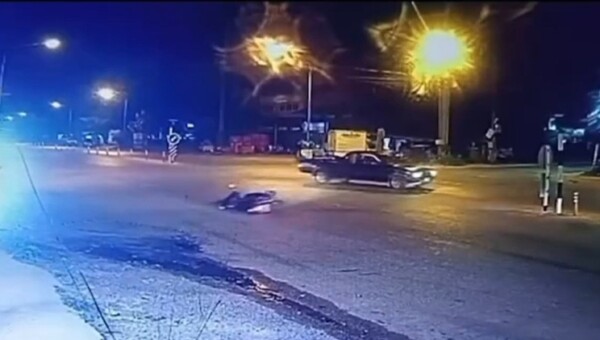 > วินาทีระทึก: แรงกระแทกส่งผลให้รถจักรยานยนต์ล้มไถลหมุนไปกับพื้นถนนไกลหลายสิบเมตร ขณะที่ในเหตุการณ์มี ไก่ 1 ตัว ที่ติดมากับรถจักรยานยนต์ ตกใจกระโดดหนีตายวิ่งวุ่นไปตามถนน ท่ามกลางความตกใจของชาวบ้านที่เห็นเหตุการณ์