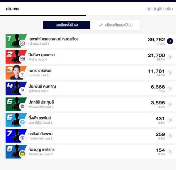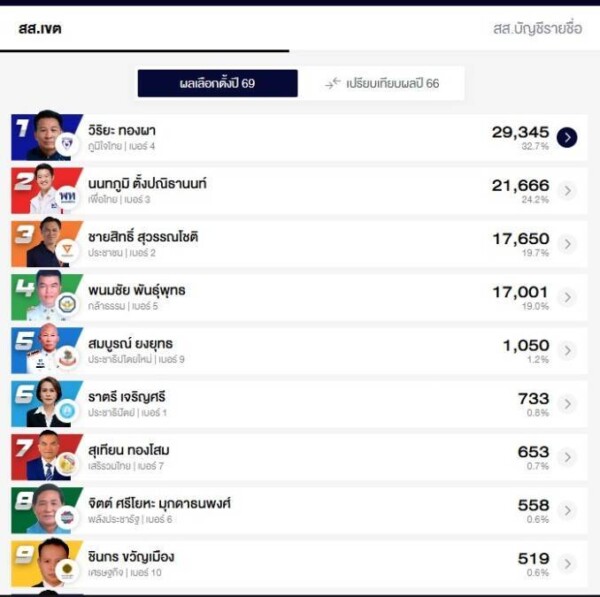 มุกดาหาร เลือกตั้ง สส.69 ไม่เป็นทางการ เขต 1 ภูมิใจไทย รักษาแชมป์ เขต 2 กล้าธรรม ล้มแชมป์