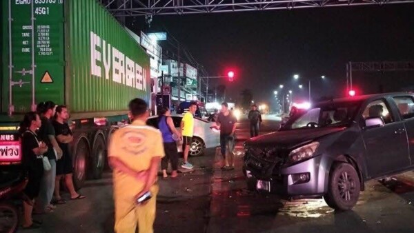 จากการสอบถาม นายธัญญะ (ขอสงวนนามสกุล) อายุ 56 ปี คนขับรถกระบะที่โดนชน กล่าวว่า ตนจอดติดไฟแดงอยู่ฝั่งขาเข้าชลบุรี ขับรถออกจากบ้านมากำลังจะไปตลาดใหม่ ไปซื้อของมาขายถึงที่เกิดเหตุต้นเหตุรถจักรยานยนต์จอดติดไฟแดงฝั่งตรงข้ามแล้วรถเก๋งขับขี่มาด้วยความเร็ว ชนท้ายรถจักรยานยนต์ที่จอดติดไฟแดงอยู่จนกระเด็น ก่อนจะเสียหลักข้ามฝั่งมาชนกับรถตน เต็มแรงแล้วเสียหลักไปชนกับรถบรรทุกที่จอดอยู่ จากนั้นคนขับรถเก๋งอาศัยช่วงชุลมุนหลบหนีไป