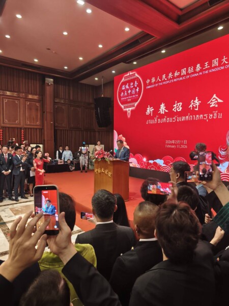 บรรยากาศภายในงานเต็มไปด้วยความอบอุ่น นายอนุทินได้มอบช่อดอกไม้สีแดงเพื่อแสดงความยินดี และรับมอบแจกันสีน้ำเงินลายมังกรทองจากท่านเอกอัครราชทูตฯ ก่อนจะเข้าสู่ช่วงไฮไลต์สำคัญคือการ “แต้มตาสิงโต” เพื่อความเป็นสิริมงคล เสริมสร้างพลังชีวิตตามความเชื่อโบราณ พร้อมมอบซองอั่งเปาให้แก่คณะเชิดสิงโตและรับชมการแสดงชุดอิงเกอที่ตระการตา