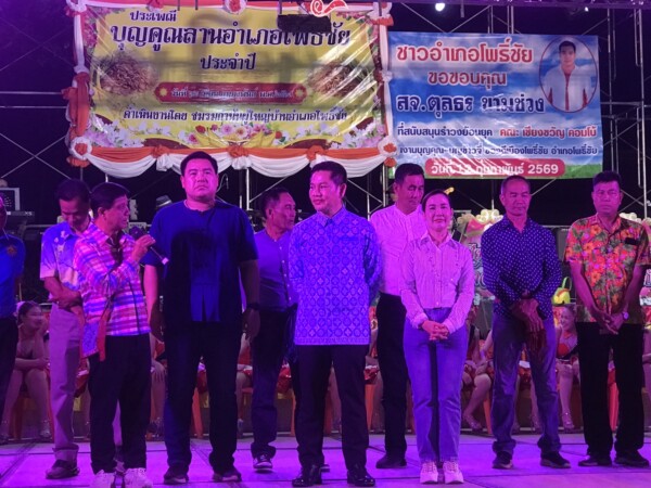 วันที่ 12 ก.พ.69 เวลา 18.00น. นายชัชวาลย์ เบ็ญจสิริวงศ์ ผู้ว่าราชการจังหวัดร้อยเอ็ด มอบหมายให้นายพิชัยยา ตุระซอง รองผู้ว่าราชการจังหวัดร้อยเอ็ด เดินทางมาเป็นประธานเปิดงานบุญคูนลานกองข้าวใหญ่และเปิดงานรำวงย้อนยุคสมโภชน์กองข้าวใหญ่ของอำเภอโพธิ์ชัย โดยมีนายสมหวัง วงศ์คำ นายอำเภอโพธิ์ชัย นายตุลธร ขามช่วง สมาชิกสภาจังหวัดร้อยเอ็ด หัวหน้าส่วนราชการต่างๆ นายกเทศบาล นายก อบต. กำนัน ผู้ใหญ่บ้าน ผช.ผู้ใหญ่บ้าน ตลอดจนชาวอำเภอโพธิ์ชัย ให้การต้อนรับ