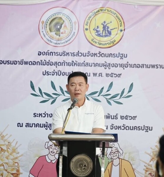 นายก อบจ.นครปฐม เป็นประธานเปิดโครงการฝึกอบรมอาชีพดอกไม้ช่อสุดท้ายให้แก่สมาคมผู้สูงอายุอ.สามพราน