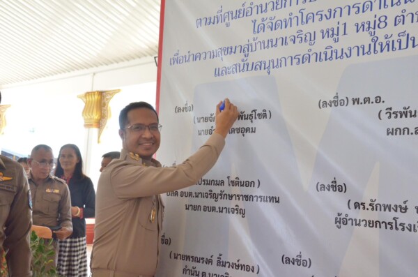 โดยมีพระครูมงคลชโลธร เจ้าอาวาสวัดศิริมงคล เจ้าคณะตำบลเมืองเดช เขต 2 พันตำรวจเอก วีรพันธ์ นาคสุข ผู้กำกับการสถานีตำรวจภูธรเดชอุดม นายแพทย์ประเสริฐ ศรีสารคาม ผู้อำนวยการโรงพยาบาลสมเด็จพระยุพราชเดชอุดม นายไชยา พรหมเกษ สาธารณสุขอำเภอเดชอุดม และหัวหน้าส่วนราชการทุกหน่วยงาน นักการเมืองท้องถิ่น พร้อมด้วย นายพรณรงค์ ลิ้มวงษ์ทอง กำนันตำบลนาเจริญ นายไพฑูรย์ คงศิลา ผู้ใหญ่บ้านนาเจริญ หมู่ที่ 1 ตำบลนาเจริญ ผู้ใหญ่บ้านและประชาชนในพื้นที่ตำบลนาเจริญเข้าร่วมพิธีเปิดและพิธีลงนามบันทึกข้อตกลงให้ความร่วมมือ โครงการตำบลยั่งยืน เพื่อแก้ไขปัญหายาเสพติด แบบครบวงจรตามยุทธศาสตร์ชาติ ประจำปีงบประมาณ 2569 ในครั้งนี้