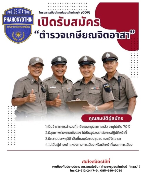ประชาสัมพันธ์: สน.พหลโยธิน เปิดรับสมัคร “ตำรวจเกษียณจิตอาสา”