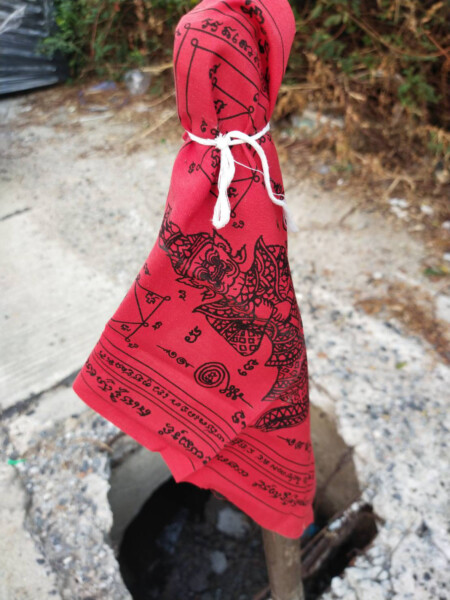 เมื่อเวลา 15.00 น.วันที่ 13 กุมภาพันธ์ 2569 หลังจากมีชาวบ้านในชุมชนโครงการ 4 แท็งค์น้ำซอย1หรือ ซอยเทศบาลบางปู 91 ถ.สุขุมวิท ต.บางปู อ.เมืองฯ จ.สมุทรปราการ ได้ถ่ายคลิปฝาท่อระบายน้ำที่ชำรุดเป็นรูขนาดใหญ่ ซุ่มเสี่ยงทำให้เกิดอันตรายกับคนในชุมชน แต่มีคนนำผ้ายันต์สีแดงของท้าวเวสสุวรรณมาพันกับหัวเสาปักไว้เตือนภัย โดยเสียงในคลิปยังเอ่ยว่า “ ผ้ายันต์ท้าวเวสสุวรรณ ท่านมาอยู่ตรงนี้ได้อย่างไร ปกติจะเห็นอยู่บนผนังบ้าน แต่ครั้งนี้มาเป็นสัญลักษณ์เตือนภัยอยู่บนฝาท่อ ป้องกันอันตรายไม่ให้คนตกลงไป ท่านเป็นทุกอย่างให้กับมนุษย์จริง ๆ ”