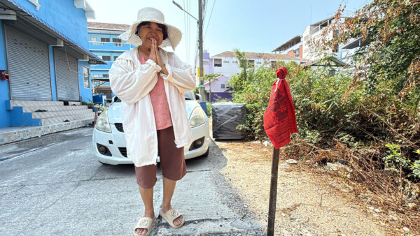โดยผู้สื่อข่าวได้ลงพื้นที่ไปยังซอยดังกล่าว พบกับป้าเสาวลักษณ์ อายุ 69 ปี ได้ยืนรอผู้สื่อข่าวและ พาไปดูผ้ายันต์ฯที่ปักไว้ พร้อมให้สัมภาษณ์ กล่าวว่า ตนเป็นภรรยาของประธานชุมชน ซึ่งตอนนี้ป่วยรักษาตัวอยู่ จึงต้องทำหน้าที่แทน ปกติทุกวัน ตนต้องพาสุนัขมาเดินเล่น เมื่อ 2 สัปดาห์ก่อน เห็นฝาท่อระบายน้ำจุดนี้แตกชำรุดเป็นรูขนาดใหญ่ กลัวว่าคนในชุมชนจะเดินหรือขับขี่รถ จยย.พลัดตกลงไปได้รับบาดเจ็บ ตน จึงนำผ้าสีแดงในบ้านมาผูกติดกับหัวเสาแล้วนำมาปักไว้เป็นสัญลักษณ์เตือนภัย โดยไม่ทราบว่า ผ้าสีแดงนั้นเป็นผ้ายันต์ท้าวเวสสุวรรณ ส่วนการซ่อมถนนและเปลี่ยนฝาท่ออันใหม่นั้น น่าจะเป็นแผนการทำงานที่เทศบาลฯ มีไว้อยู่ก่อนแล้ว แต่ถึงอย่างไรก็ตาม ตนก็ต้องยกมือไหว้กราบผ้ายันต์สีแดงท้าวเวสสุวรรณ เสมือนดลใจให้เทศบาลฯ มาซ่อมถนนเปลี่ยนฝาท่ออันใหม่ได้เร็วกว่าที่คิดไว้ พร้อมทั้งขอบคุณผู้บริหารเทศบาลตำบลบางปู ที่ใส่ใจดูแลชุมชน ทำให้ชาวบ้านได้รับความปลอดภัยในการสัญจรบนถนน