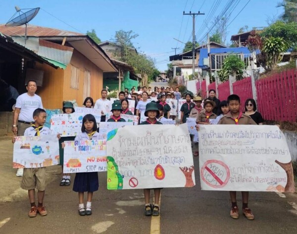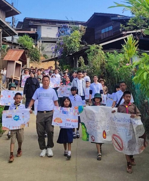 นายอำเภอปัว นำกำลังภาครัฐ–ชุมชน–นักเรียน เคาะประตูบ้านหยุดเผา สกัดไฟป่า–PM2.5 รอบดอยภูคา