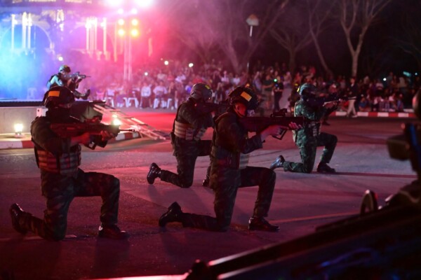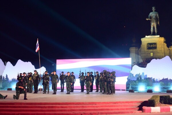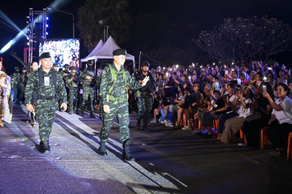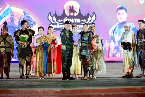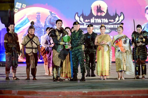 พลเอกบุญสิน พาดกลาง พร้อมด้วย ผศ.สุพางค์พรรณ พาดกลาง และผู้บังคับบัญชาระดับสูง ร่วมชมการแสดงแสงสีเสียง “วีรกรรมแห่งบรรพชน” งานน้อมรำลึกสมเด็จพระนเรศวรมหาราช กู้แผ่นดิน ประจำปี 2569
