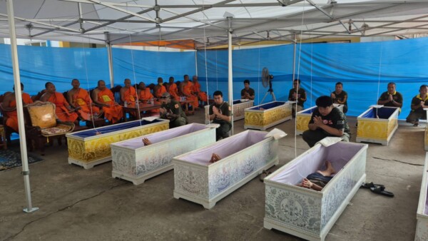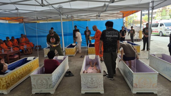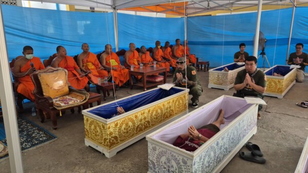 นอกจากนั้นทางวัดท่ามะปราง ได้จัดพิธีนอนโลง ให้กับประชาชนทั่วไป เพื่อสะเดาะเคราะห์ต่อชะตาให้กับตัวเอง และเป็นการเสริมสร้างบารมี ให้พ้นทุกข์โศกโรคภัยต่างๆ ปรากฏว่า มีประชาชนทยอยกันมานอนโลงกันเป็นจำนวนมาก เนื่องจากมีความเชื่อในเรื่องดังกล่าว ให้หายจากโรคภัยไข้เจ็บ ตลอดทั้งขอให้มีโชคมีลาภวาสนา เพราะเชื่อกันว่า หลังจากเข้าพิธีนอนโลงแล้วจะทำให้ชีวิตดีขึ้น มีความก้าวหน้าในอาชีพการงาน เป็นการปัดทุกข์ ปัดโศก ปัดโรค ปัดภัย ให้หมดไป