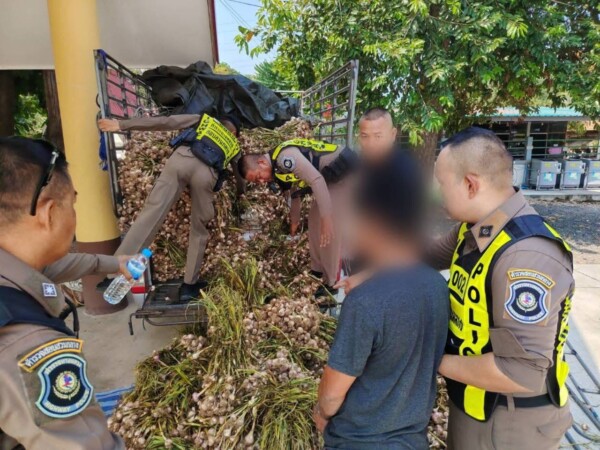เมื่อเจ้าหน้าที่ให้สัญญาณหยุดตรวจ พบคนขับแสดงอาการมีพิรุธอย่างเห็นได้ชัด โดยพยายามให้การว่า “กำลังขนกระเทียมมาจากจังหวัดสุโขทัย” เพื่อนำไปส่งตามออร์เดอร์