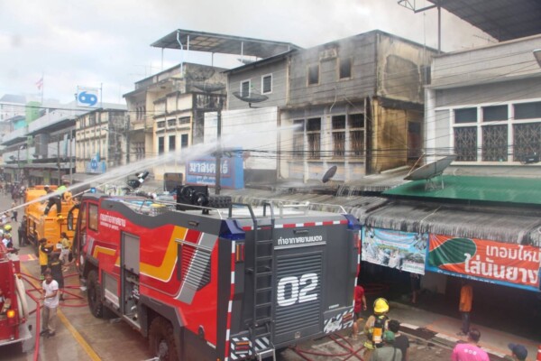 วันที่ 16 ก.พ.69 ร.ต.อ.พรชัย ชูนวล พนักงานสอบสวน สภ.เบตง ได้รับแจ้งเกิดเหตุเพลิงไหม้ ที่ร้านเจริญพานิช เลขที่ 16 ถ.เทศจินดา เขตเทศบาลเมืองเบตง อ.เบตง จ.ยะลา จึงรีบรุดไปที่เกิดเหตุพร้อมเจ้าหน้าที่หน่วยป้องกันและบรรเทาสาธารณภัยเทศบาลเมืองเบตง รถดับเพลิง จำนวน 4 คัน ที่เกิดเหตุเป็นอาคารพาณิชย์ 3 ชั้น เปิดเป็นร้านจำหน่ายเสื้อผ้า อยู่ห่างจากตลาดสดเทศบาลเมืองเบตงประมาณ 50 เมตร มีประชาชนจำนวนมากยืนดูควันไฟที่โพยพุ่งออกมาจากภายในร้าน เจ้าหน้าที่จึงช่วยกันลากสาย เร่งฉีดน้ำเพื่อดับไฟ แต่เนื่องด้วยภายในมีข้าวของจำนวนมากและเป็นเชื้อเพลิงอย่างดี ไฟจึงลุกลามอย่างรวดเร็วและรุนแรง จึงประสานขอรถดับเพลิงของที่ว่าการอำเภอเบตง รถดับเพลิงของท่าอากาศยานเบตง และรถน้ำของเทศบาลเมืองเบตง มาช่วยฉีดน้ำไม่ให้ไฟลุกลามไปยังอาคารข้างเคียง เจ้าหน้าที่ยังได้รับแจ้งว่ามีผู้ติดอยู่ภายในบ้าน 3 คน จึงพยายามตัดประตูเหล็กด้านหน้า งัดประตูบ้านด้านหลัง ทุบบานเกร็ด เพื่อเข้าไปช่วยเหลือ แต่ด้านในไฟแรงมากจึงไม่สามารถเข้าไปได้ จึงได้เปลี่ยนแผนใช้บันไดปีนขึ้นไปบริเวณดาดฟ้าชั้นสองด้านหลังร้าน ช่วยเหลือลงมาทีละคน ซึ่งทั้ง 3 คน เป็นพ่อแม่ลูก มีอาการสำลักควัน กู้ภัยจึงนำตัวส่งโรงพยาบาลเบตง และยังมีเจ้าหน้าที่กู้ชีพกู้ภัยสว่างธรรมสถานเบตง ได้รับบาดเจ็บเล็กน้อยจากการถูกกระแสไฟฟ้าดูด 1 คน
